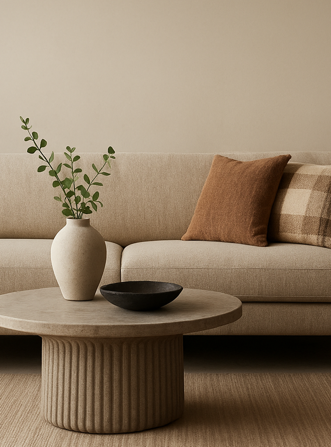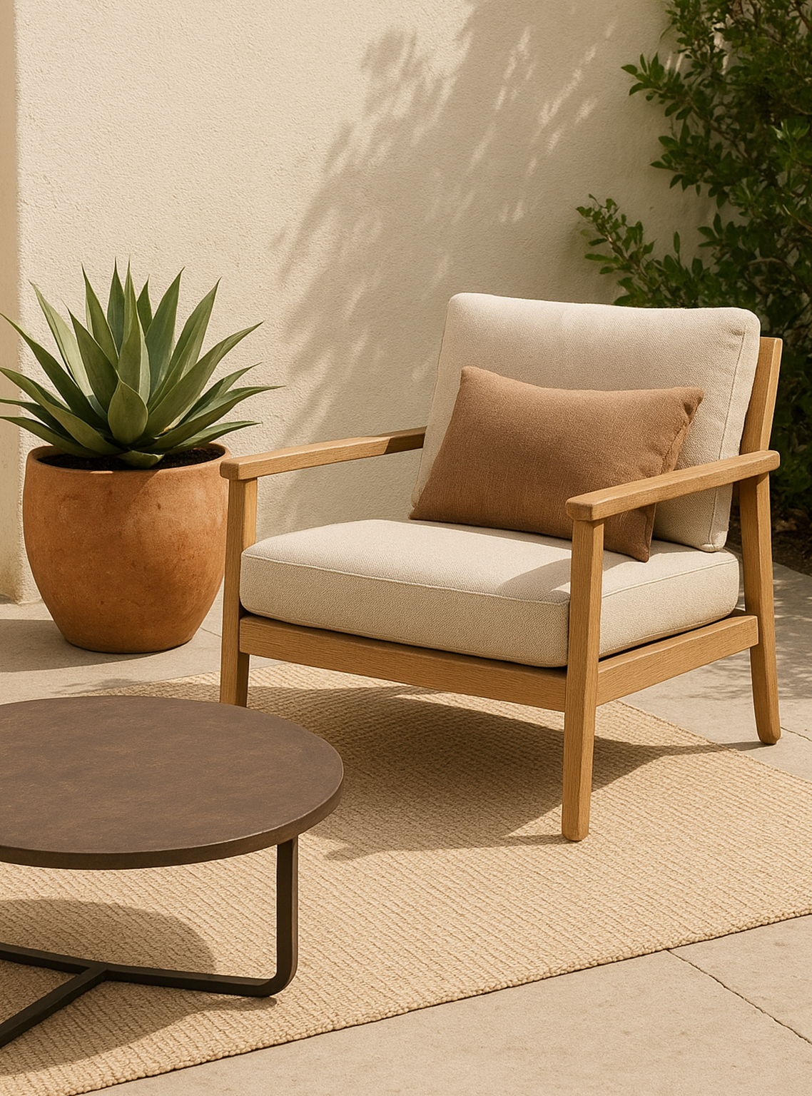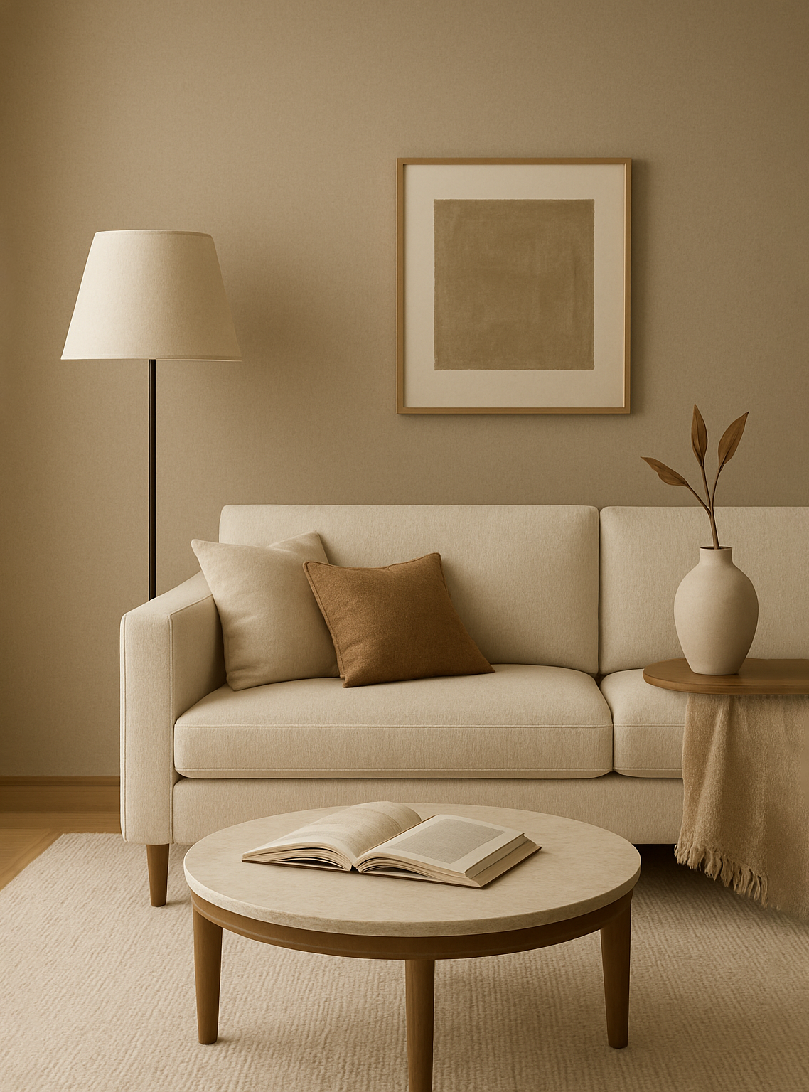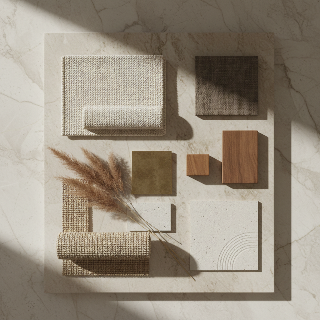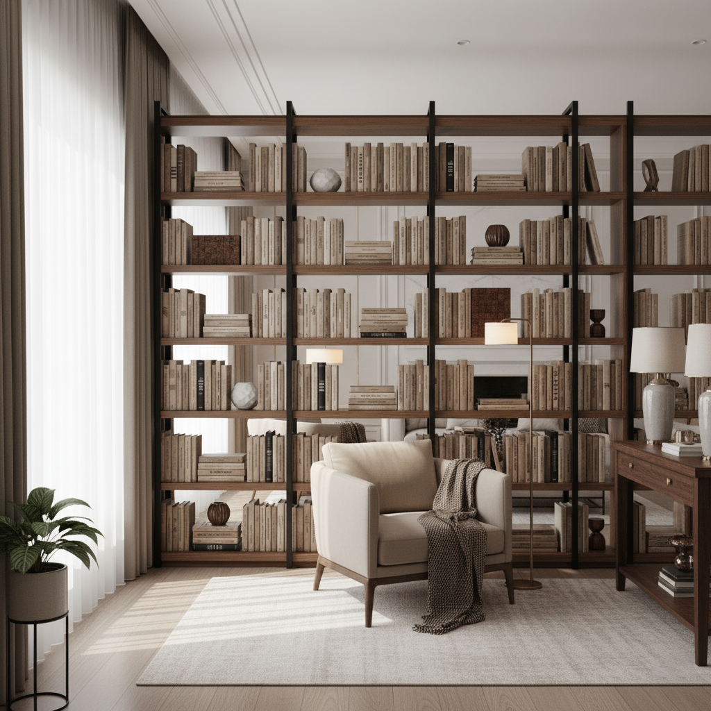 Create an image of an ergonomic office chair set in a beautiful, corporate office building with semi-warm, bright lighting. Use the following instructions: The image should be simple.ย Do not include any text or words or icons in the images. The brand palette is: Beige f9f7f5 ยท Black 000000 ยท Mousy Brown 5c4b3b ยท Shadow brown 686868. The image does not have to include only these colours, they can include complementary colours. The images do not need to be literal, they can be symbolic. The brand is high-end and polished. The brand is big on textiles and textures and creates the following products for inspiration: Furniture - Indoor and outdoor furniture for various rooms. Lighting - A variety of lighting fixtures. Decor - Home decor items to complete a space. Outdoor - A collection of outdoor furniture and accessories.